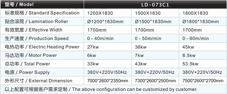 | 濾材復(fù)合機(jī)/貼合機(jī)-濾材復(fù)合分切機(jī)LD-073C1主要技術(shù)參數(shù) / Major technical parameters |