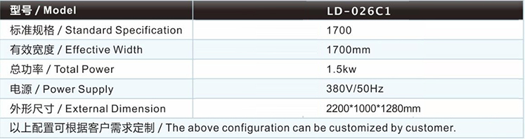 | 斜裁卷布機(jī)(調(diào)速型)LD-026C1主要技術(shù)參數(shù) / Major technical parameters |