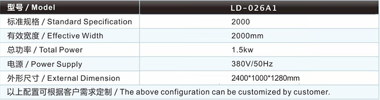 | 斜裁卷布機(jī)(定速型)LD-026A1主要技術(shù)參數(shù) / Major technical parameters |