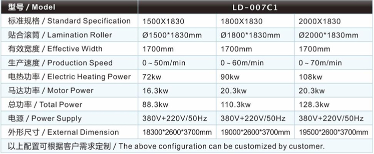 | SBR復合機/貼合機-雙輪SBR復合機/貼合機LD-007C1主要技術參數(shù) / Major technical parameters |