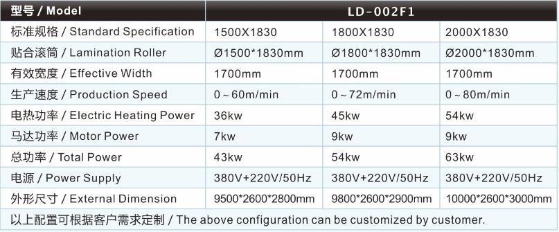| 汽車(chē)用品復(fù)合機(jī)/貼合機(jī)-橫立式雙槽水膠網(wǎng)帶復(fù)合機(jī)/貼合機(jī)LD-002F1主要技術(shù)參數(shù) / Major technical parameters |