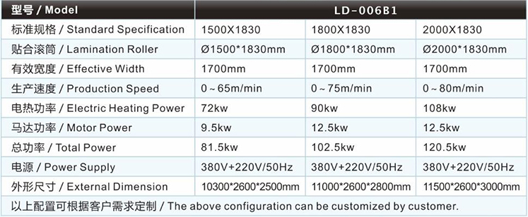 | 水膠復合機/貼合機-立式雙輪雙網單槽水膠高速泡棉復合機/貼合機LD-006B1的主要技術參數 / Major technical parameters |