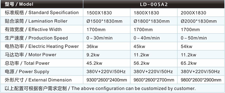 | 運動用品復合機/貼合機-EVA強力膠復合機/貼合機LD-005A2的主要技術(shù)參數(shù) / Major technical parameters |