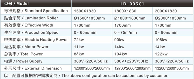 | 水膠復合機/貼合機-臥式雙輪雙網雙槽水膠高速泡棉復合機/貼合機LD-006C1的主要技術參數(shù) / Major technical parameters |
