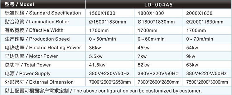 | 內衣復合機/貼合機-立式單槽水膠網帶無痕復合機/貼合機LD-004A5的主要技術參數(shù) / Major technical parameters |