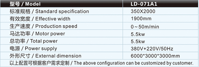 | 火焰復(fù)合機/貼合機-簡單型火焰復(fù)合機/貼合機LD-071A1主要技術(shù)參數(shù) / Major technical parameters |