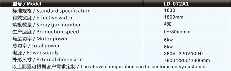 | 內(nèi)衣復(fù)合機/貼合機-噴膠式復(fù)合機/貼合機LD-072A1主要技術(shù)參數(shù) / Major technical parameters |