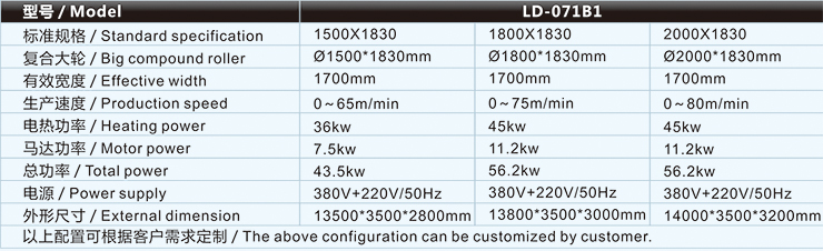 海綿復合機/貼合機-高速火焰復合機/貼合機LD-071B1主要技術(shù)參數(shù) / Major technical parameters |